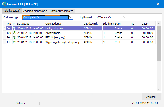 Tak uruchomiony serwer będzie przejmował zadania zlecane przez program R2Płatnik zwalniając w ten sposób zlecający program od ich wykonywania i pozwalając użytkownikowi na wykonanie innych mniej czasochłonnych zadań (można np. zlecić przeliczanie długiej listy płac, a w tym czasie użytkownik może zająć się wypełnianiem jakichś ewidencji).