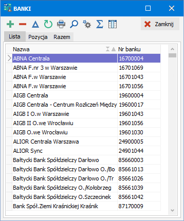 Biblioteka banków jest wstępnie wypełniona przez producenta programu. Jeśli w bibliotece brakuje