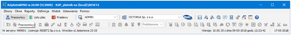 Okno Lista pracowników jest podstawowym oknem systemu. Przechodzimy do niego klikając w głównym oknie programu w przycisk Pracownicy lub wybierając Okna - Pracownicy.